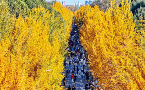 沈阳农业大学“敞开大门”迎市民观银杏赏秋色