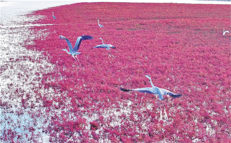 通讯员 王晓根 报道 深秋时节,威海南海新区昌阳河入海口处,大片大片的翅碱蓬陆续泛