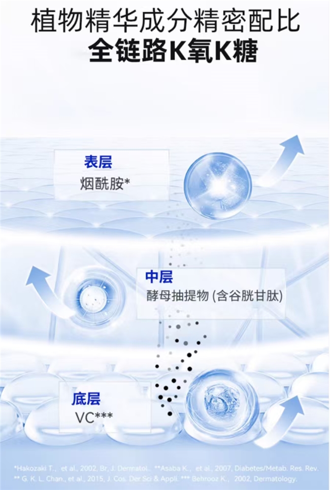 说到功效,元初尘可不搞“花架子”,走的是全链路“打击”路线。第一步先给黑色素的“生产线”断电,精准抑制酪氨酸酶活性,从源头减少色斑;第二步用天然成分筑起“防护墙”,拦住已经生成的黑色素往表皮跑,防止斑点变深;第三步深入肌底修复受损屏障,激活皮肤自己代谢色素的能力。